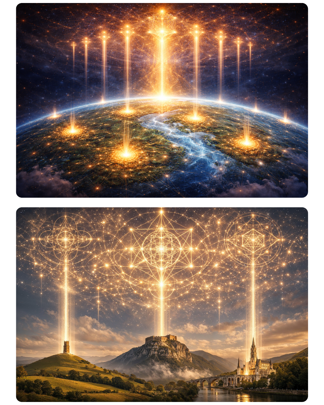England resurrects the flame in the Western grid. The Cathar mountains restore the root architecture the flame needs to live in. Lourdes seals the whole arc in living water and sends it into the planetary field.